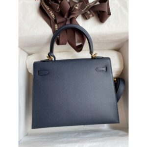 Hermes Kelly Sellier 25 Handmade Bag In Deep Blue Epsom Calfskin