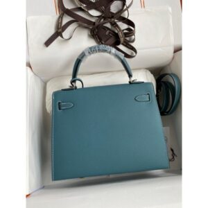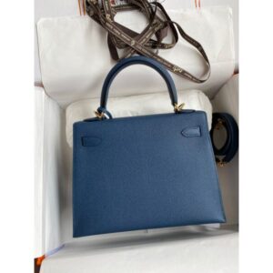Hermes Kelly Sellier 25 Handmade Bag In Blue France Epsom Calfskin