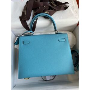 Hermes Kelly Sellier 25 Handmade Bag In Celeste Epsom Calfskin