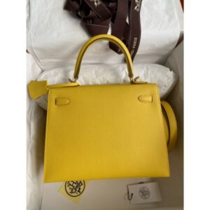Hermes Kelly Sellier 25 Handmade Bag in Jaune de Naples Epsom Calfskin