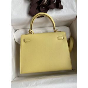 Hermes Kelly Sellier 25 Handmade Bag In Jaune Poussin Epsom Calfskin