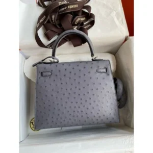 Hermes Kelly Sellier 25 Handmade Bag in Gris Agate Ostrich Leather