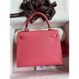 Hermes Kelly Sellier 25 Handmade Bag In Rose Lipstick Mysore Goatskin