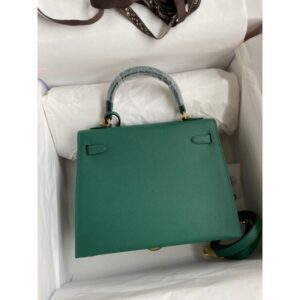 Hermes Kelly Sellier 25 Handmade Bag In Malachite Epsom Calfskin