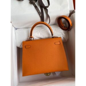 Hermes Kelly Sellier 25 Handmade Bag In Orange Epsom Calfskin