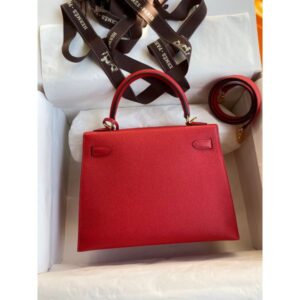 Hermes Kelly Sellier 25 Handmade Bag In Red Epsom Calfskin