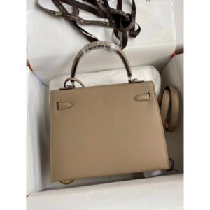 Hermes Kelly Sellier 25 Handmade Bag In Taupe Epsom Calfskin