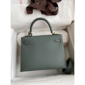 Hermes Kelly Sellier 25 Handmade Bag in Vert Yucca Epsom Calfskin