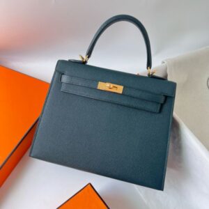 Hermes Kelly Sellier 25 Handmade Bag in Vert Cypres Epsom Calfskin
