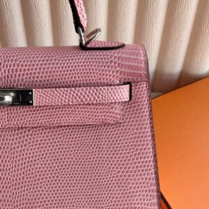 Hermes Kelly Sellier 25 Handmade Bag in Rose Confetti Lizard Leather