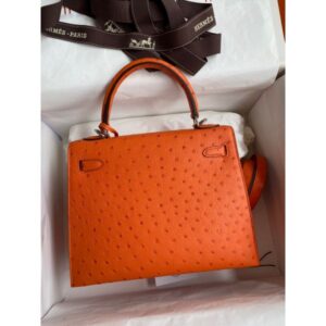 Hermes Kelly Sellier 25 Handmade Bag In Orange Ostrich Leather