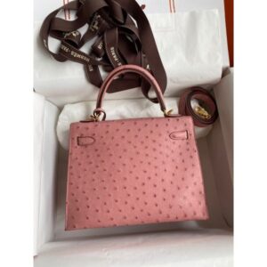 Hermes Kelly Sellier 25 Handmade Bag in Rose Bubblegum Ostrich Leather