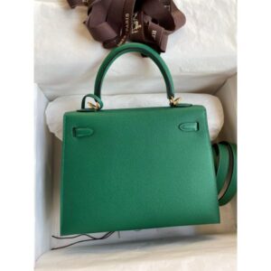 Hermes Kelly Sellier 25 Handmade Bag In Vert Vertigo Epsom Calfskin