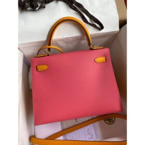 Hermes Kelly Sellier 28 Bicolor Bag in Rose Lipstick and Yellow Epsom Calfskin