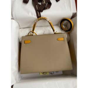 Hermes Kelly Sellier 25 Tricolor Bag in Craie/Sesame/Yellow Epsom Calfskin