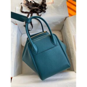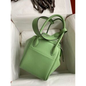 Hermes Lindy 30 Handmade Bag In Vert Bosphore Clemence Leather