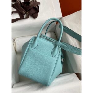Hermes Mini Lindy Handmade Bag In Blue Frida Clemence Leather