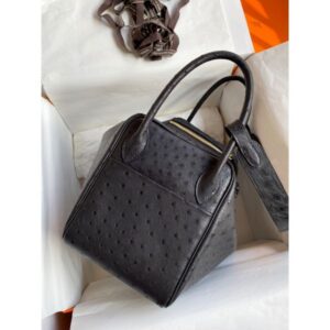 Hermes Mini Lindy Handmade Bag In Black Matte Alligator Leather