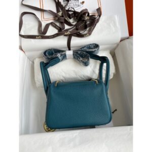 Hermes Mini Lindy Handmade Bag In Vert Bosphore Clemence Leather