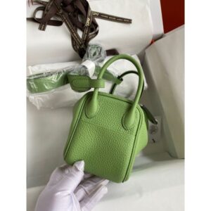 Hermes Mini Lindy Handmade Bag In Vert Amande Clemence Leather