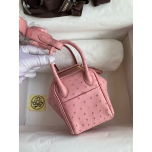 Hermes Mini Lindy Handmade Bag In Rose Sakura Ostrich Leather