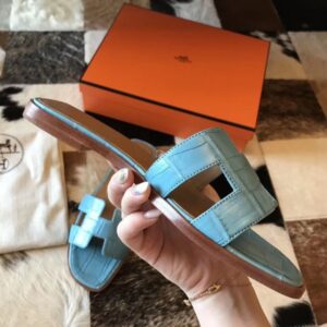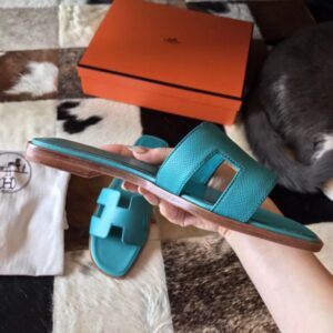 Hermes Oran Sandals In Blue Lin Epsom Leather