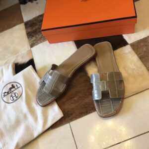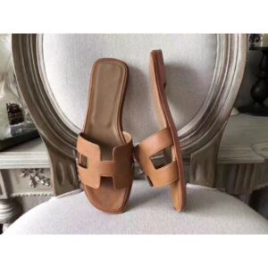 Hermes Oran Sandals In Etoupe Epsom Leather