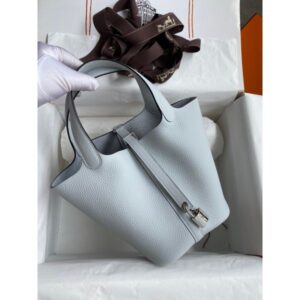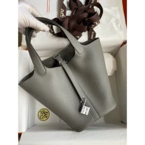 Hermes Picotin Lock 18 Handmade Bag in Pearl Grey Clemence Leather