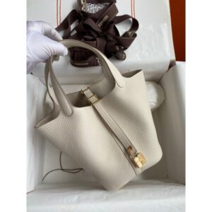 Hermes Picotin Lock 18 Handmade Bag in Craie Clemence Leather