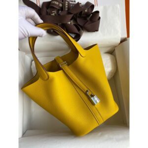 Hermes Picotin Lock 18 Handmade Bag in Jaune Poussin Clemence Leather