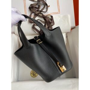 Hermes Picotin Lock 18 Handmade Bag in Black Clemence Leather