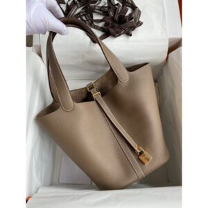 Hermes Picotin Lock 22 Handmade Bag in Tourterelle Clemence Leather