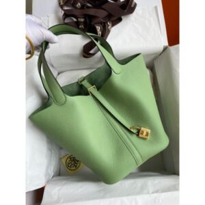 Hermes Picotin Lock 22 Handmade Bag in Vert Amande Clemence Leather