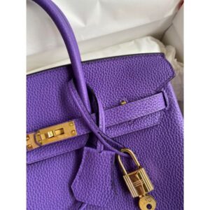 Hermes Birkin 25 Retourne Handmade Bag In Violet Clemence Leather