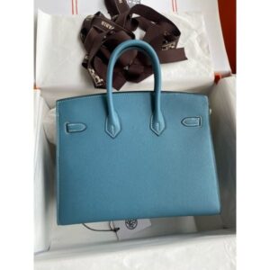 Hermes Birkin 25 Sellier Handmade Bag in Blue Glacier Epsom Calfskin