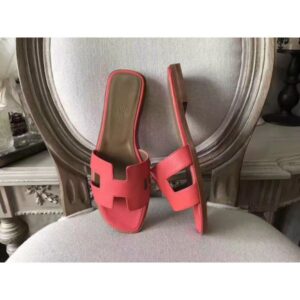 Hermes Oran Sandals In Rose Scheherazade Shiny Niloticus Crocodile