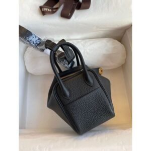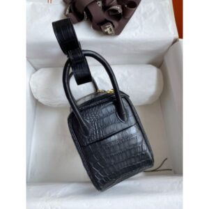 Hermes Mini Lindy Handmade Bag In Black Matte Alligator Leather