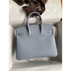 Hermes Birkin 25cm Bag In Blue Brume Clemence Leather PHW