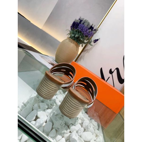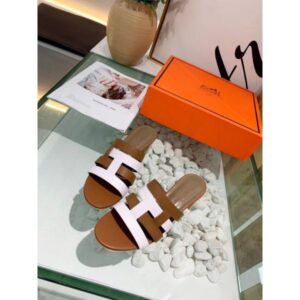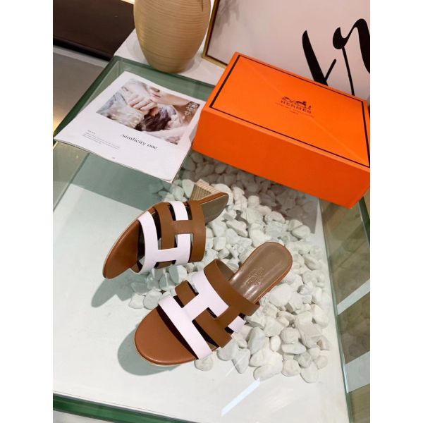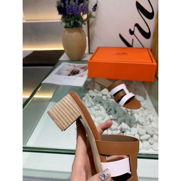 Hermes Amica 5mm Sandals In Brown/White Calfskin
