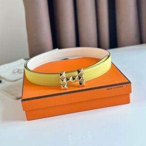 Hermes Mini Constance 24mm Belt in White Epsom Leather and Yellow Swift Leather