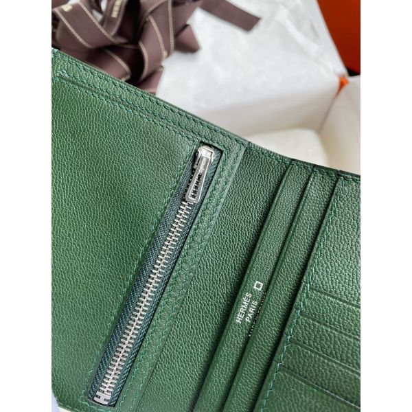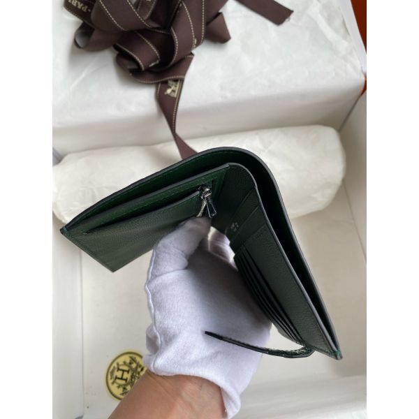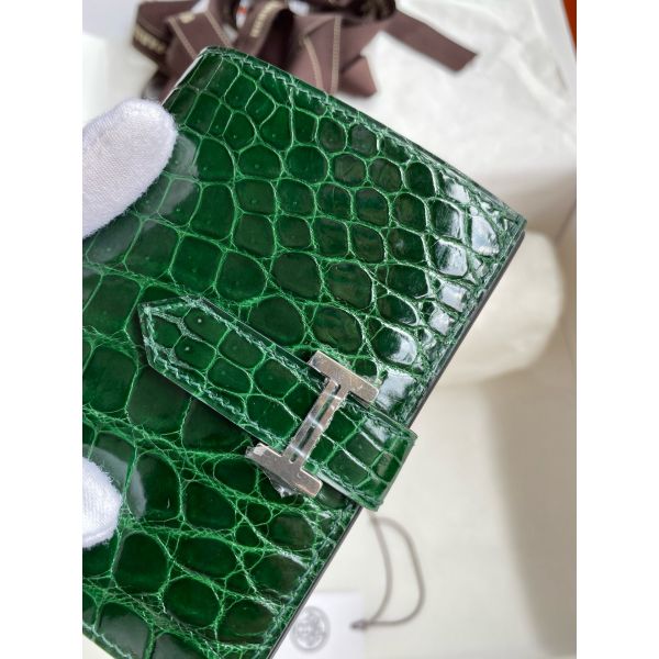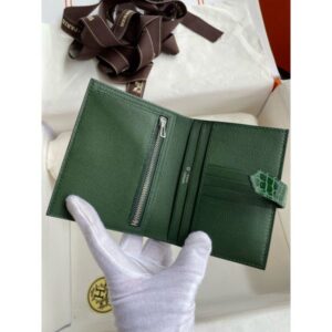 Hermes Bearn Compact Wallet in Vert Fonce Shiny Alligator Leather