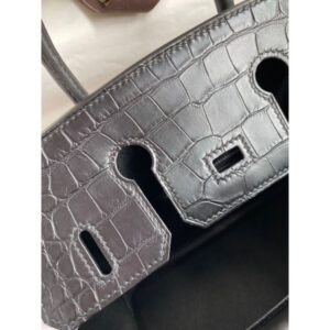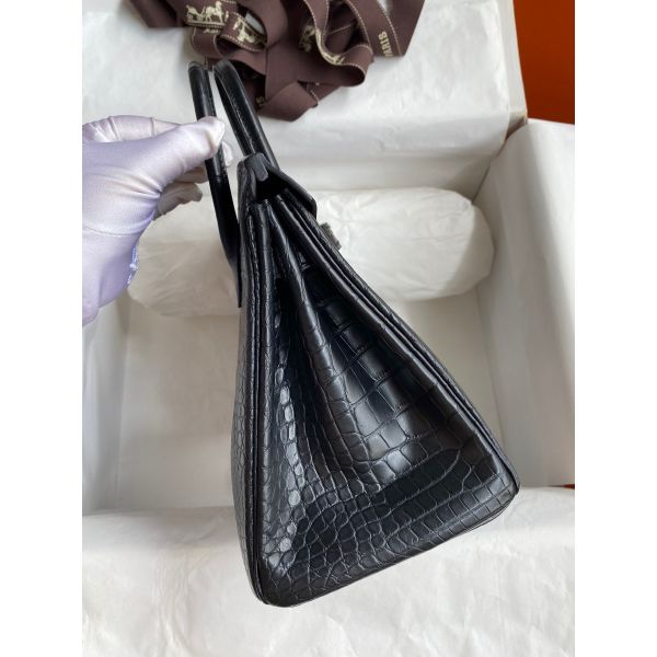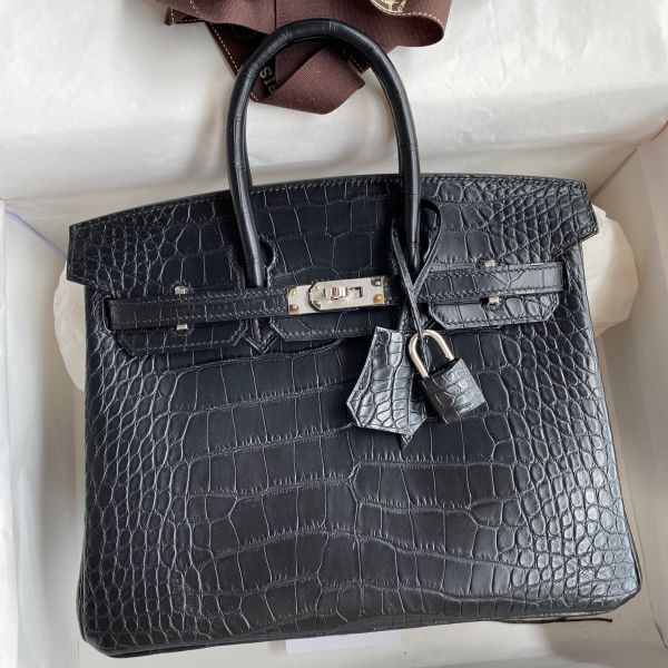 Hermes Birkin 25 Bag In Black Matte Alligator Crocodile Skin