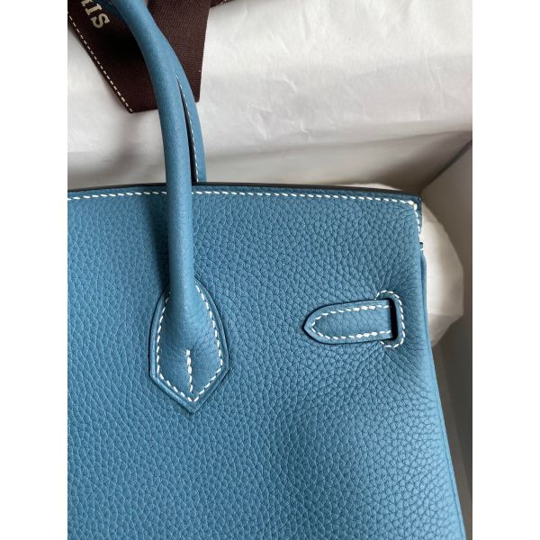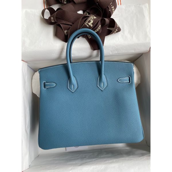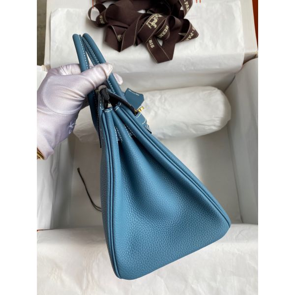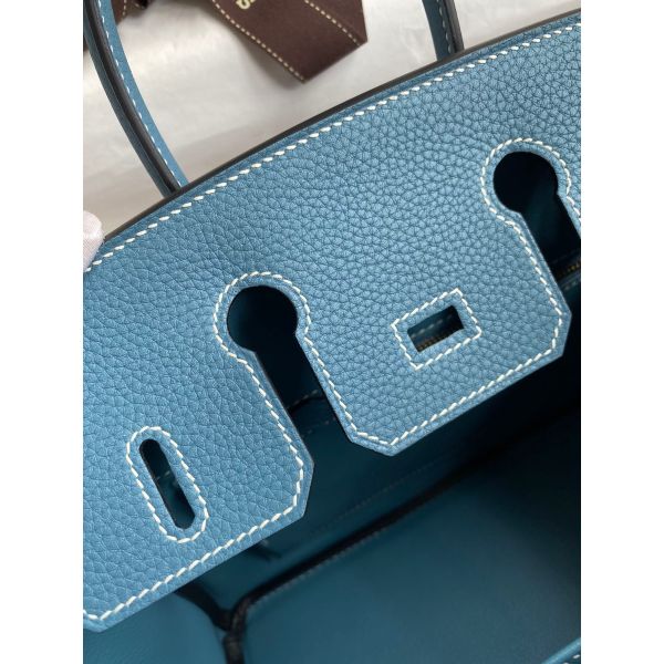 Hermes Birkin 25 Handmade Bag In Blue Jean Clemence Leather