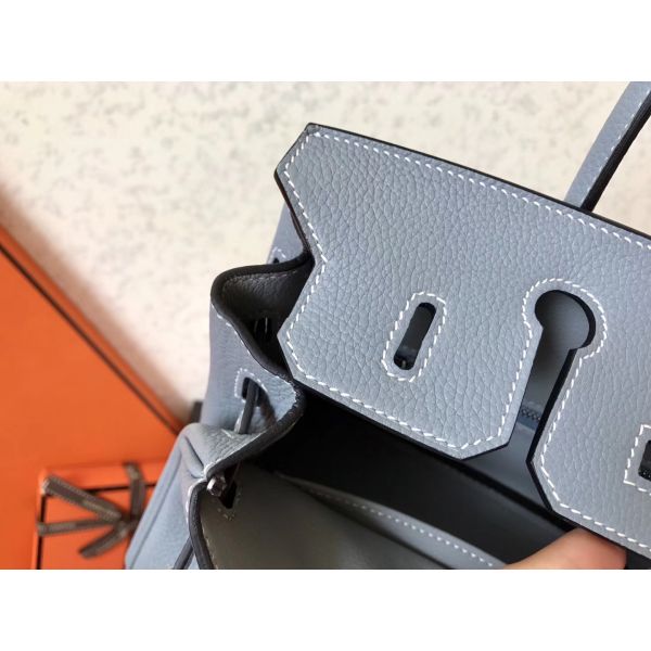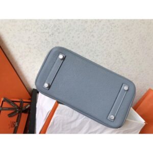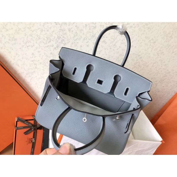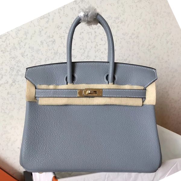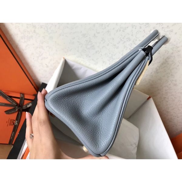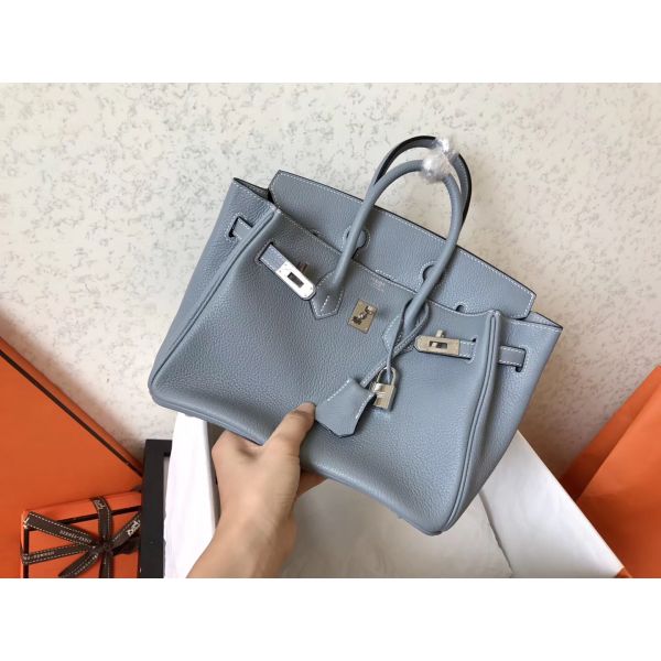 Hermes Birkin 25 Handmade Bag In Blue Lin Clemence Leather