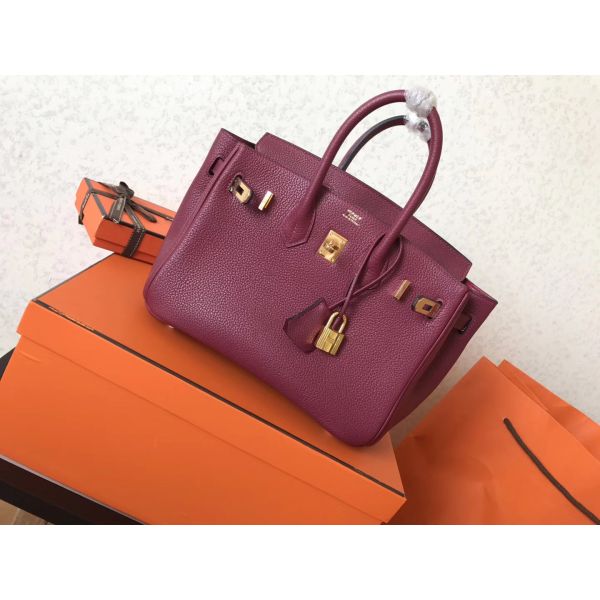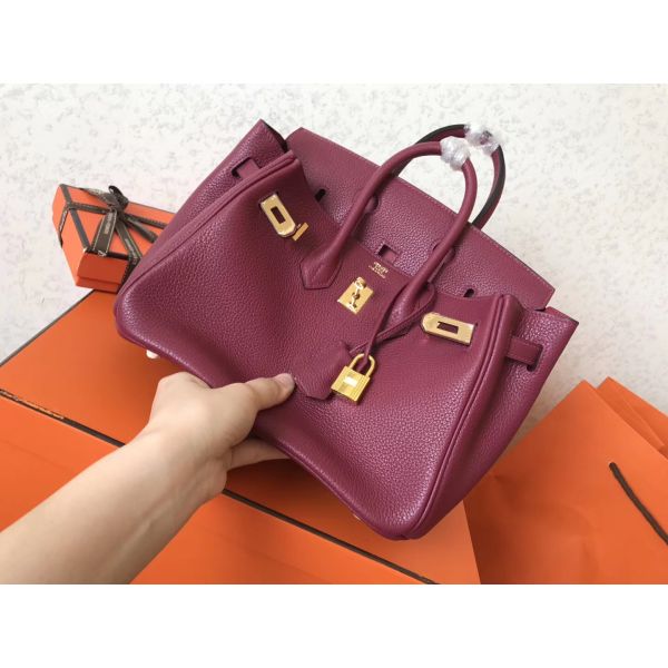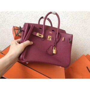 Hermes Birkin 25 Handmade Bag In Ruby Clemence Leather