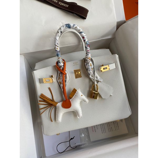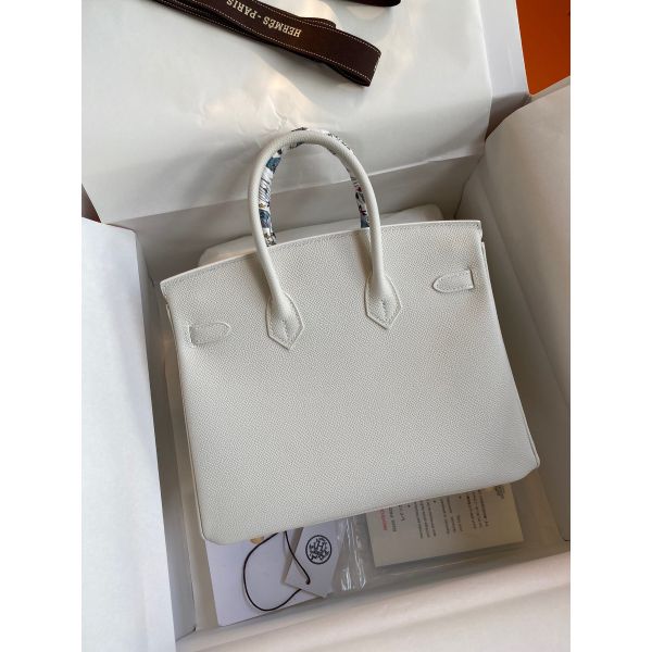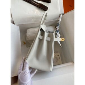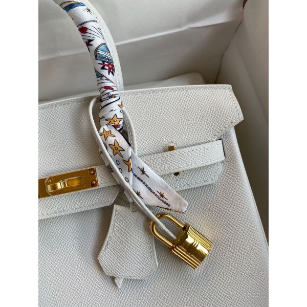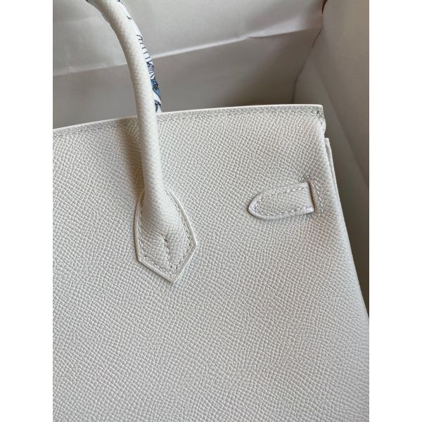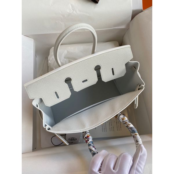 Hermes Birkin 25 Handmade Bag In White Epsom Calfskin