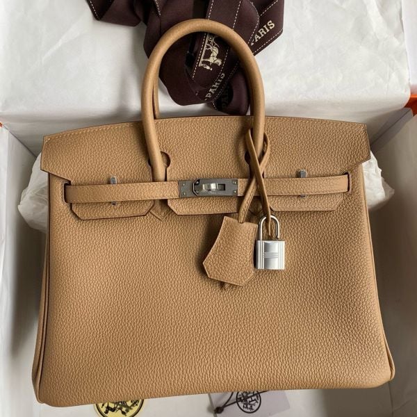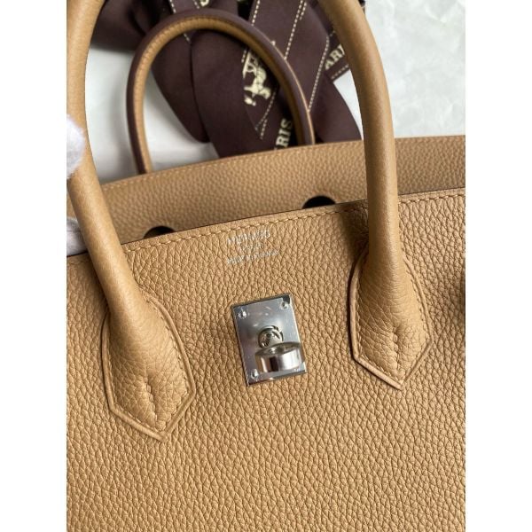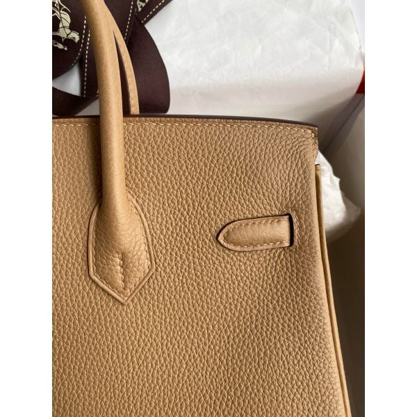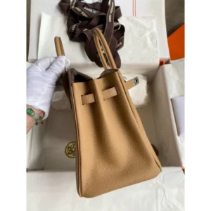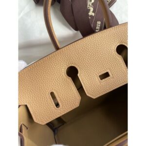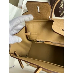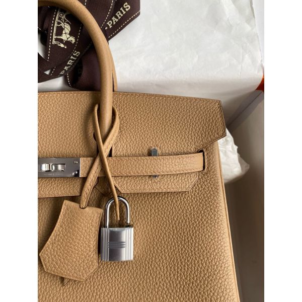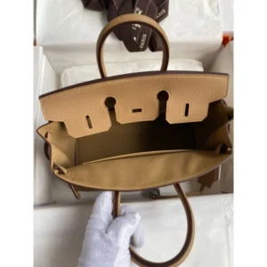 Hermes Birkin 25 Retourne Handmade Bag in Chai Clemence Leather