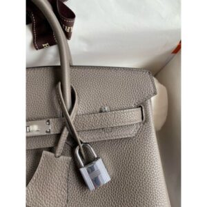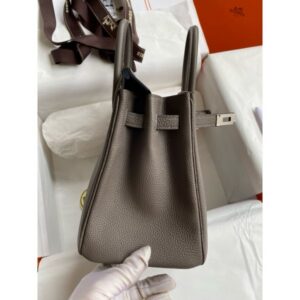 Hermes Birkin 25 Retourne Handmade Bag In Etain Clemence Leather