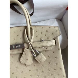 Hermes Birkin 25 Retourne Handmade Bag In Parchemin Ostrich Leather
