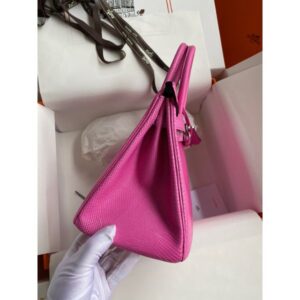 Hermes Birkin 25 Retourne Handmade Bag In Pink Lizard Leather